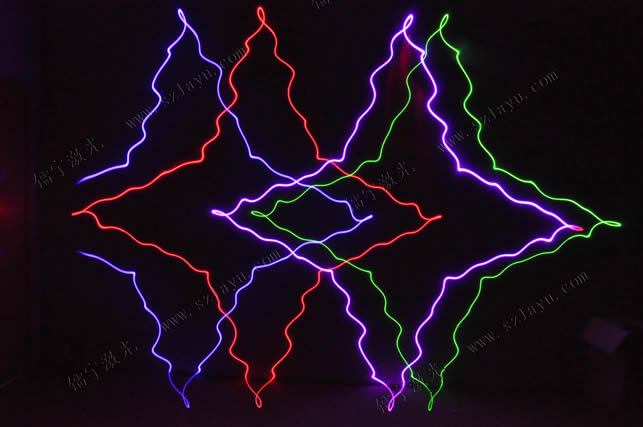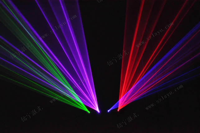 ◆ 激光器:50mW绿激光+150W红激光+150mW蓝激光+300W紫激光(红蓝合成)