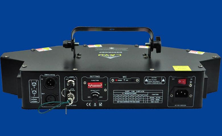◆  Features: Features: RGBP(pink)/RGBY four colors four tunnels laser lights. The housing is designed by delicate and beautiful fan. The angle of laser irradiation is wider than normal laser light(more than 50%). Four tunnels beam effects combination and four kinds of laser colors make more colorful. Four modes for your choice, over 100 kinds of built-in laser patterns. You can control it by DMX signal, master/slave.
