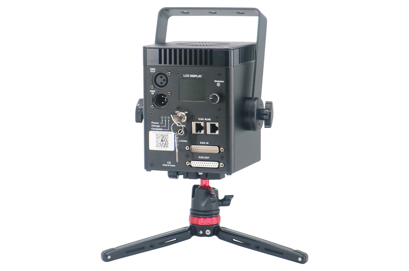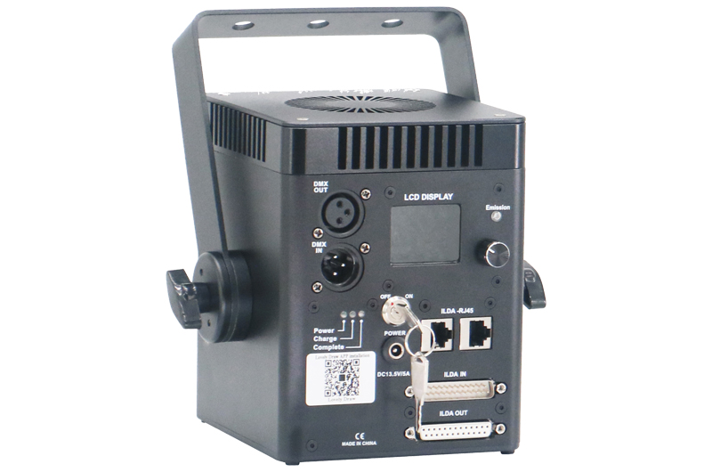 1.一款具有强大功能的蓝牙控制动画激光灯。用户只需要一台手机或者一台平板便可轻松完成复杂的激光秀。相比传统的激光控制方式,具有更省钱、更方便应用、更简单操作等特点。 2.机器迷你紧凑型布局,防尘防油烟设计,内置两个电池组,容量7000mAh,可连续运行3小时以上,也可以低压直流供电。可以随时随地使用激光灯。 3.大功率模拟调制激光器,小光斑小发散角设计,达到专业激光级别。 4.采用30K低功耗高性能振镜,图形稳定。 5.安全配置:内置激光单点电子保护、激光钥匙开关。 6.强大APP功能: 1)内置了多种主题的图形、动画节目,光束节目。用户可以轻松设计激光节目。 2)内置基础的几何图形。用户可以选择其中一种或者多种图案进行播放,可以设置多种动作叠加效果、颜色效果。 3)绘画(描边)功能。用户可以利用此功能来进行对事物进行描边或者绘制自己喜欢的内容。 4)文字输入功能。用户可以使用此功能来轻实现个性化的文字内容输出。 5)图片导入、播放功能。 6)丰富的效果设置。客户可以选择上、下、左、右移动,旋转,缩放,渐绘,变形波浪,频闪等变化功能。 7)APP设计的激光节目,可以下载到激光灯里,可以脱离APP自动运行,让应用变得更简单。 技术参数 1.电源适配器参数:输入电压AC100-240V,输出电压DC13.5V/5A,最大功率65W 2.激光参数:模拟线性调制激光器,总功率6W; 红激光功率1.8W,波长638nm;绿激光功率1.8W,波长525nm;蓝激光功率2.5W,波长450nm 3.出口光斑:<4.5*5.5(H)mm, 4.发散角:<1.4mrad 5.激光寿命:>10000小时 6.激光安全等级:Class 4 7.防护级别:IP54 8.工作环境:室内,-30°C--40°C 9.扫描系统:30K低功耗高性能振镜, 最大扫描角度±25° 10.APP控制软件:灵动智绘Lovely Draw 11.运行系统:安卓Android,苹果IOS,微信小程序 12.控制方式:APP控制、自走程序,DMX512,ILDA控制 13.电池组:锂电池组(Lithium ion Battery)*2组,每组18650*3PCS,电压12V,容量3500mAh/组 14.固定方式:台面放置、三脚架支撑 15.散热方式:散热器+温控风扇 15.机器尺寸:125(L)*140(W)*165(H)mm 16.ABS箱体尺寸:420(L)*330(W)*220(H)mm 17.净重:2.6Kg(不带电池组),2.9Kg(带电池组) 18.毛重:6.2Kg(不带电池组),6.5Kg(带电池组)